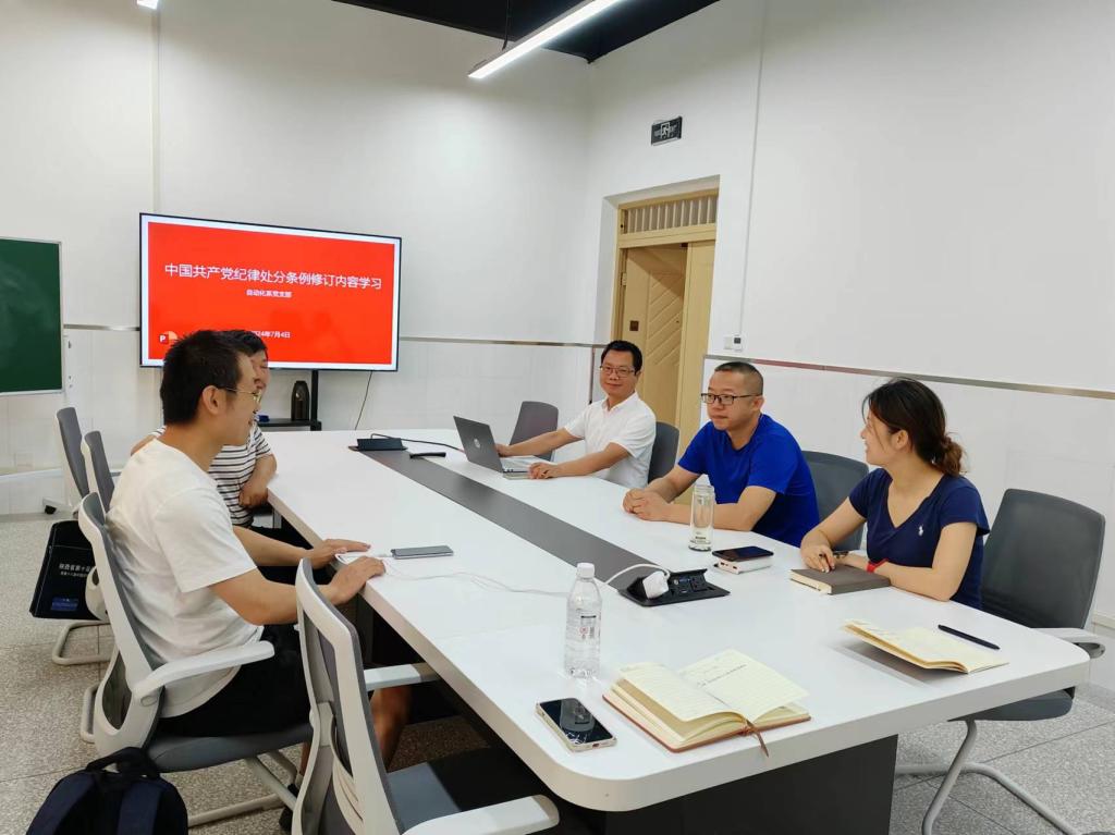 根据学校学院党纪学习教育安排,2024年7月4日上午,米兰milan官方网站自动化系党支部在系部会议室开展了党纪学习教育专题会议,自动化系党支部全体党员教师参加会议,会议由支部书记靳引利主持。