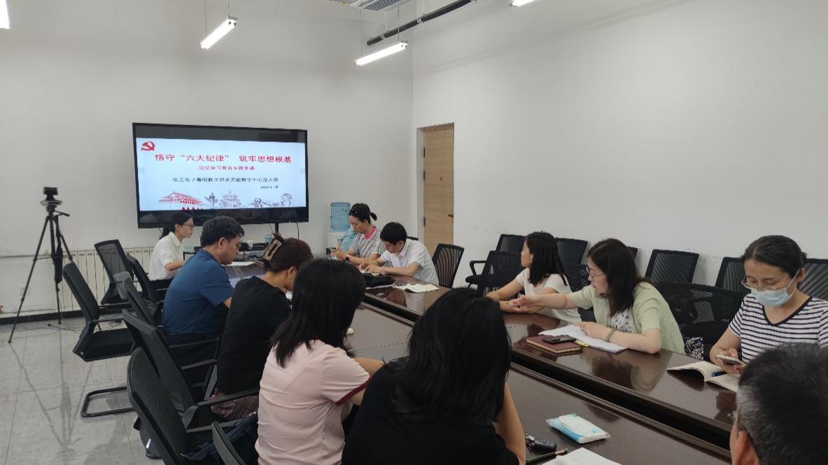 7月4日上午,电工电子基础教学部及实验教学中心党支部在学院319会议室开展党纪学习教育专题党课,米兰milan官方网站党委书记贺炳彦、党委副书记高婷婷、电工电子党支部全体党员参会,会议由支部书记杨丽媛主持。