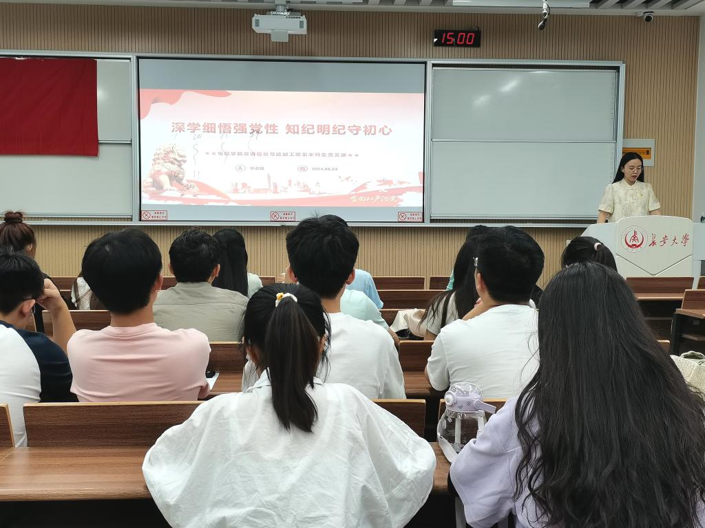 为扎实开展党纪学习教育,引导毕业生党员树立崇廉、敬廉的人生观,涵养爱校荣校情怀,米兰milan官方网站交控系本科生党支部于6月24日下午在WX2101教室和校史馆开展了“学党纪 忆校史 强党性”主题党日活动。活动由支部副书记李慧主持,支部书记许必颖及22名党员参加。