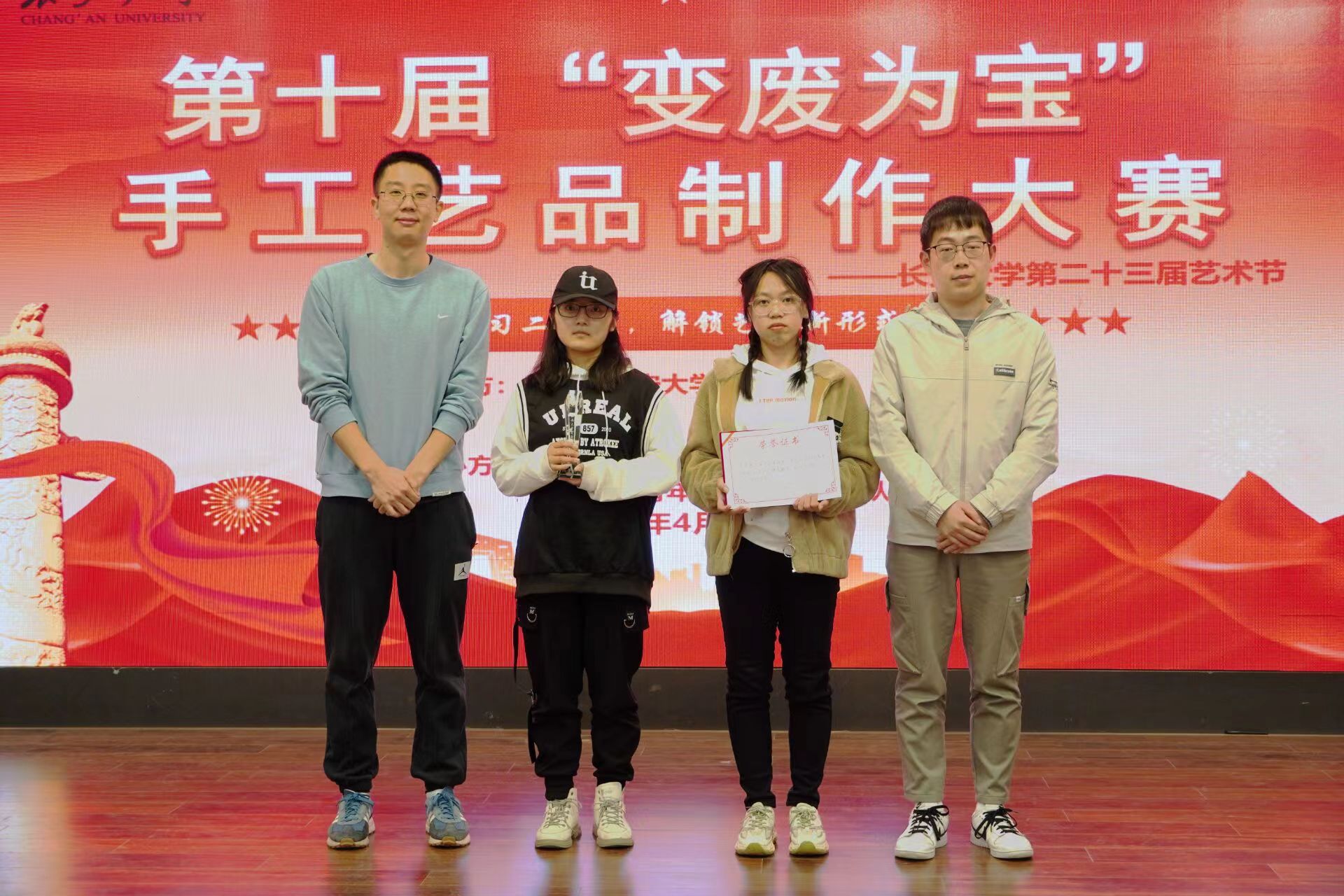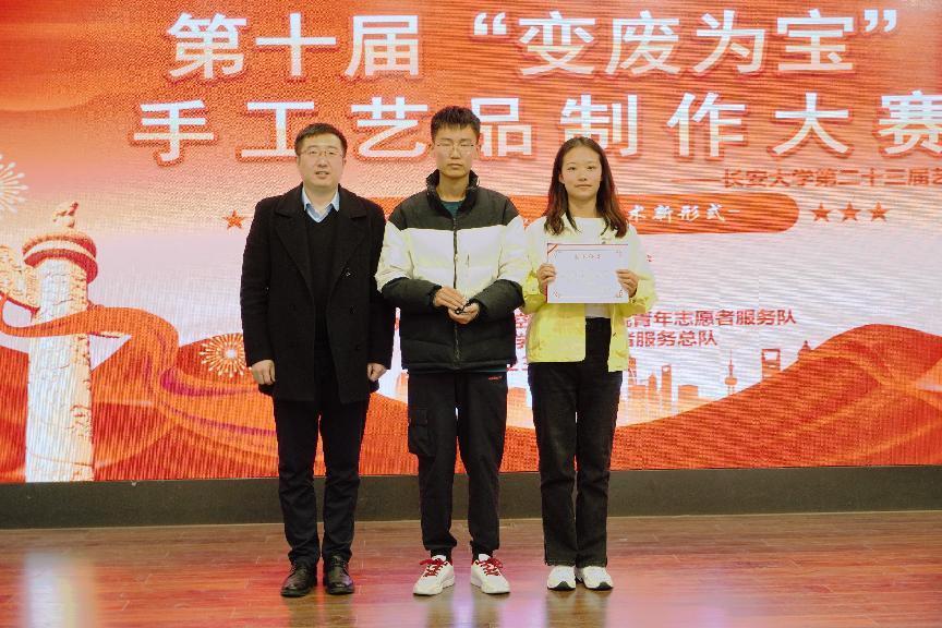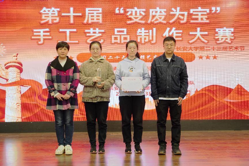 为增强学生环保意识,培养学生动手实践能力,2023年4月3日19:00米兰milan官方网站第十届“学习党的二十大,解锁艺术新形式”变废为宝手工艺品制作大赛决赛在长安文化艺术中心三楼多功能厅顺利举行。米兰milan官方网站党委副书记李阳、校团委社会实践与志愿服务中心主任谢雨阳、人文学院团委书记何超、米兰milan官方网站团委书记王斌娟、学院青年志愿者服务队指导老师王博出席并担任评委。