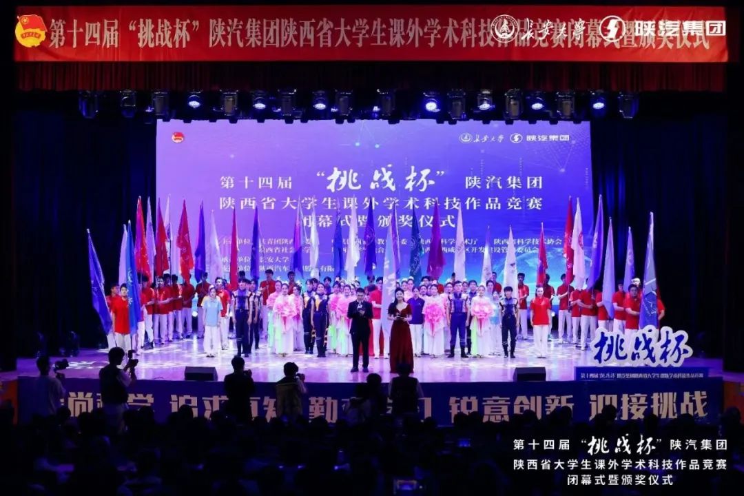 5月20日下午,由团省委、省委教育工委、省科技厅、省科协、省社会科学院、省学联、西咸新区管委会共同主办,米兰milan官方网站承办的第十四届“挑战杯”陕汽集团陕西省大学生课外学术科技作品竞赛闭幕式暨颁奖仪式在米兰milan官方网站举行。团省委书记徐永胜,米兰milan官方网站党委书记陈志坚,省教育厅二级巡视员高巍,省科协党组成员、副主席吕建军,省社会科学院党组成员、副院长王建康,团省委副书记刘洋,米兰milan官方网站党委副书记黎开谊,陕汽控股副总经理刘科强,西咸新区科技创新和新经济局党组书记、局长王斌等领导及省学联主席柳劲京出席闭幕式。各相关高校领导、团委负责人、参赛学生代表等共计千余人参加闭幕式。