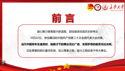 会议最后,学院团委书记王斌娟做总结发言。她指出学习宣传贯彻党的二十大精神是当前和今后一个时期的首要政治任务和头等大事。作为新时代的青年,我们应该提高政治站位,切实抓好理论学习,把思想和行动迅速统一到党的二十大精神上来;应学懂弄透,牢牢把握党的二十大精神的基本要义,让党的二十大精神入脑入心,在我们心中落地生根,在全院掀起学习贯彻党的二十大精神的热潮;作为新时代青年应进一步强化责任担当,涵养奋斗精神,坚持创新精神,提高创新意识,让青春在社会主义现代化建设的火热实践中绽放绚丽之花。