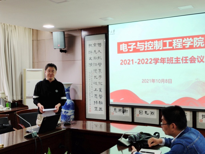 党委副书记赵丹着重强调了班主任的工作职责,一是做好学生思想政治教育工作,引导学生树立正确的世界观、人生观、价值观;二是培养班级内的良好学习氛围,开展学习方法讨论、学习交流等活动,培养良好学风;三是经常性与学生交流,做到每周与所带班级学生见面,重点关注特殊群体学生,与学生保持密切沟通。