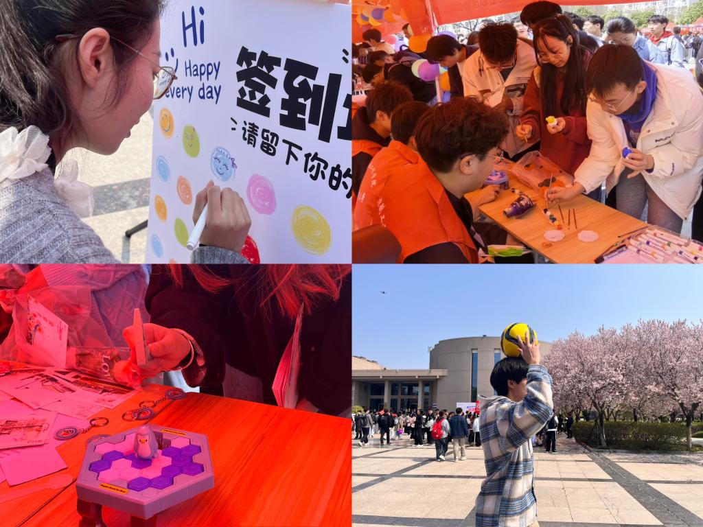 学院宣传点位设置了“幸运大转盘”,同学们通过转动大转盘参与抽取到的心理小游戏,并获得对应的礼品。丰富多彩的游戏吸引了诸多同学的参与和体验,现场热闹非凡。