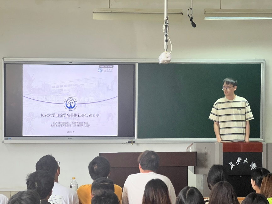 往届暑期社会实践优秀宣传员田博远、优秀团队负责人侯瑶向同学们分享社会实践经验。田博远强调了实践活动及时记录宣传的重要性,指出要以视频、照片、文字等多种形式进行细致的记录,并联系主流媒体进行广泛宣传;侯瑶同学从实践选题、准备活动和实践过程三个方面进行详细介绍并分享经验。