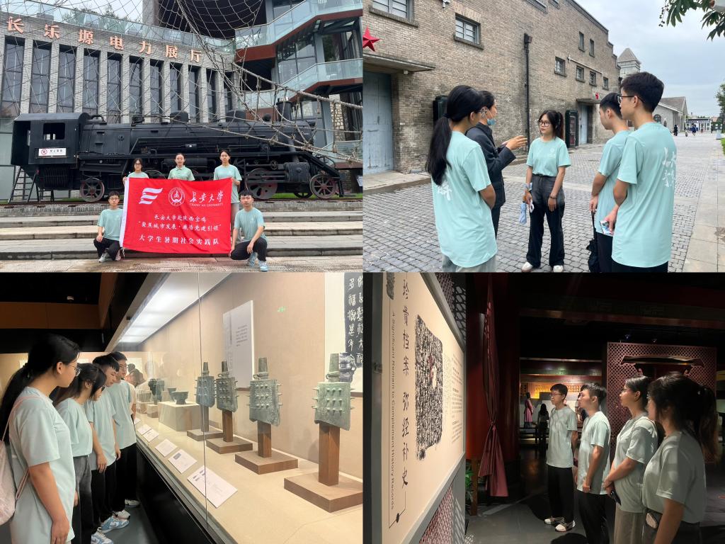踔厉奋发,勇毅前行。实践队在长乐塬抗战遗址公园参观了窑洞车间、薄壳车间等抗战时期的工业遗迹和展馆,那些历经风雨依然屹立不倒的老厂房、旧机器,见证了抗战时期民族工业在极端困难条件下的坚守和发展,向大家讲述着中国工业独立自主、自力更生的壮阔历程。在青铜器博物院,队员们通过文物、沙盘、场景复原等内容,详细了解了青铜器的制作工艺和我国青铜文明的悠久历史。
