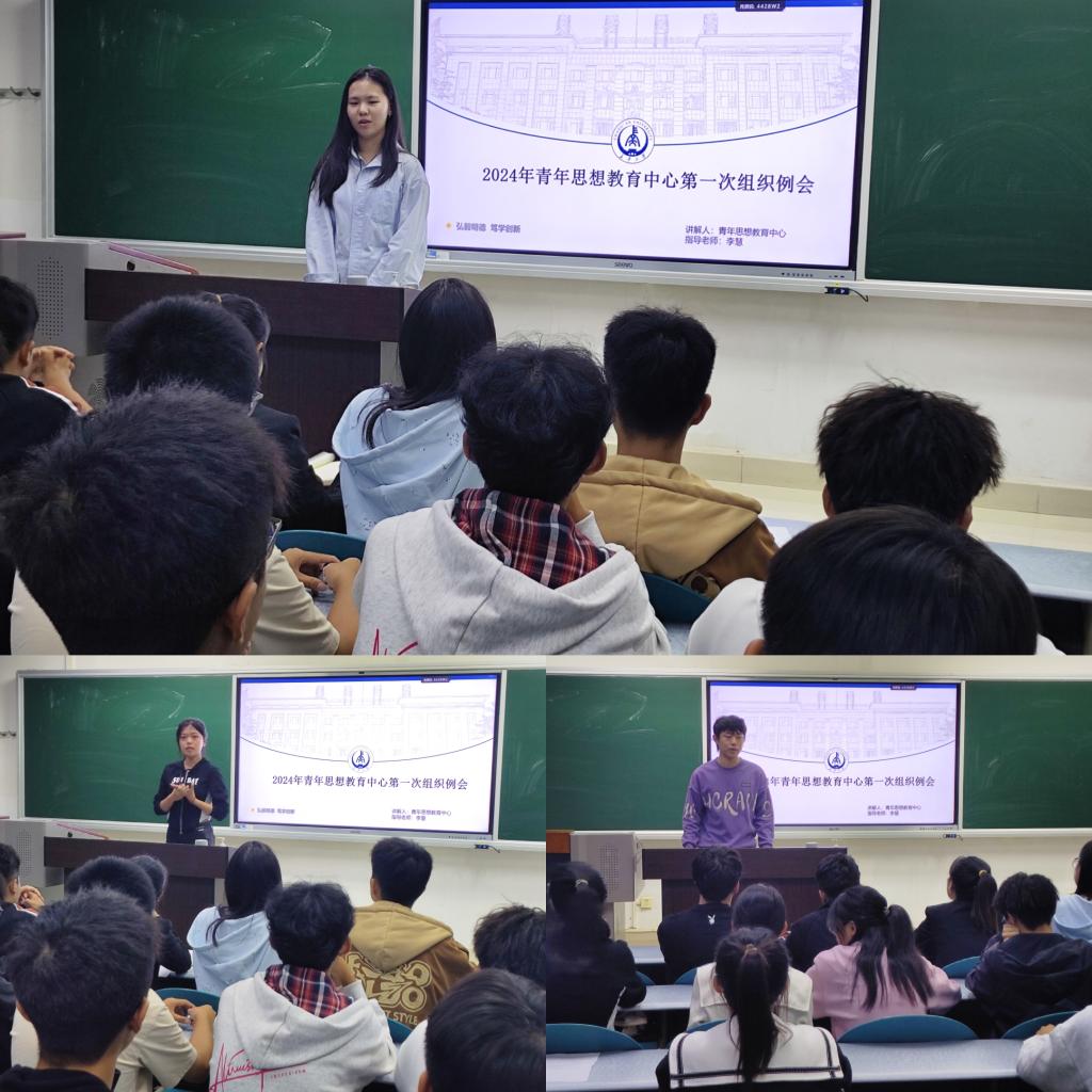 为全面加强团学干部队伍建设,提高团学干部的综合素质,推动新学期团学工作的顺利开展,10月18日晚,米兰milan官方网站青年思想教育中心在北校区WM1102教室召开2024-2025学年第一次全体例会。青年思想教育中心指导老师李慧及全体成员参加会议,会议由唐紫妍主持。