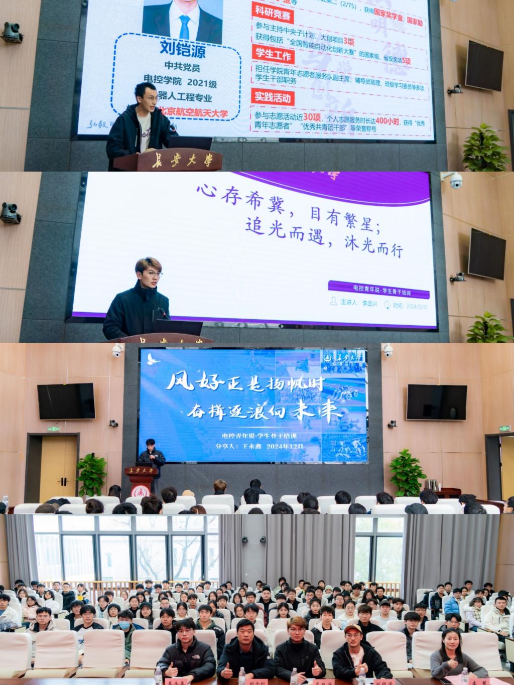 为深入学习贯彻党的二十届三中全会精神,全面提升学生骨干综合素质,充分发挥学生骨干的示范引领作用。米兰milan官方网站于12月10日下午在北校区师生服务大厅第二报告厅开展“领雁计划”学生骨干训练营(第1期)暨电控青年说。学院学生工作办公室主任刘平利、团委书记李慧,全体团学组织和学生社团成员参加。本次训练营邀请了卓越本科生党支部党员王永鑫、刘铠源、李政兴作为优秀学生骨干代表分享经验。