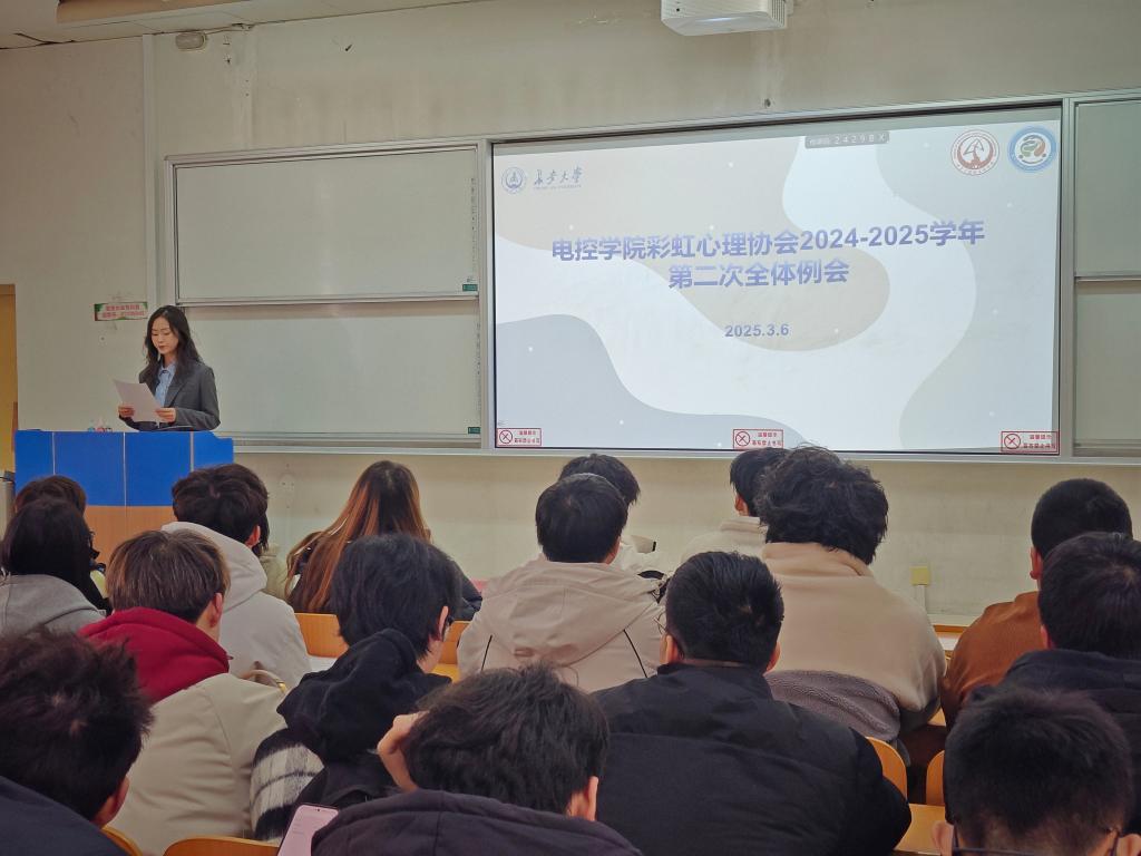 3月6日中午,米兰milan官方网站彩虹心理协会(以下简称心协)于WX4203教室举行了2024-2025学年第二次全体例会。院党委副书记兼二级心理辅导站站长高婷婷、心协指导老师张馨月以及心协全体成员参加本次会议,会议由宣传部志愿者郭湘主持。
