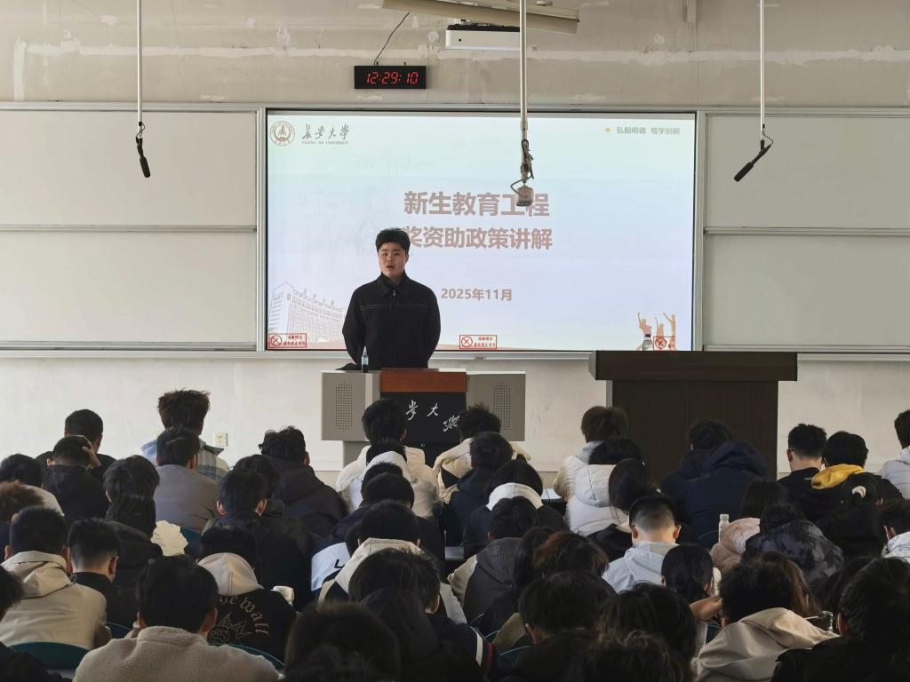 为深入落实新生教育工程,帮助2025级新生全面了解国家及学校各类奖助政策,助力学生安心就学、成长成才,11月18日,米兰milan官方网站在WM1201教室组织开展了2025级新生奖资助政策宣讲主题班会。本次班会由2025级本科生辅导员吴耀东、孙超共同主讲,学院全体2025级本科生参加。